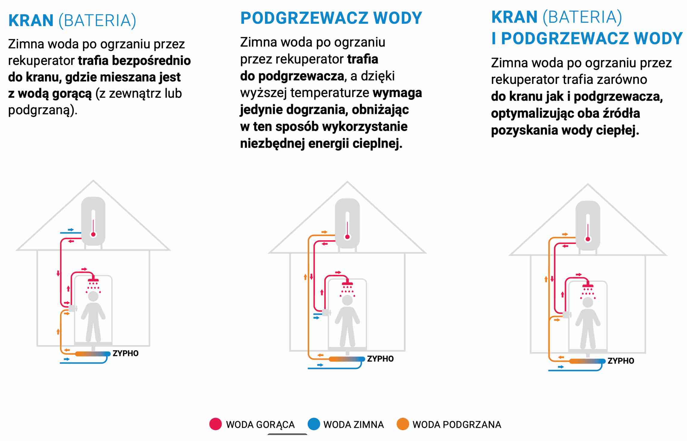 Dyskomfort związany z brakiem ciepłej wody będzie dla Ciebie już przeszłością! Pamiętaj, ZYPHO zapewnia również błyskawiczne dogrzewanie ciepłej wody, która się kończy.