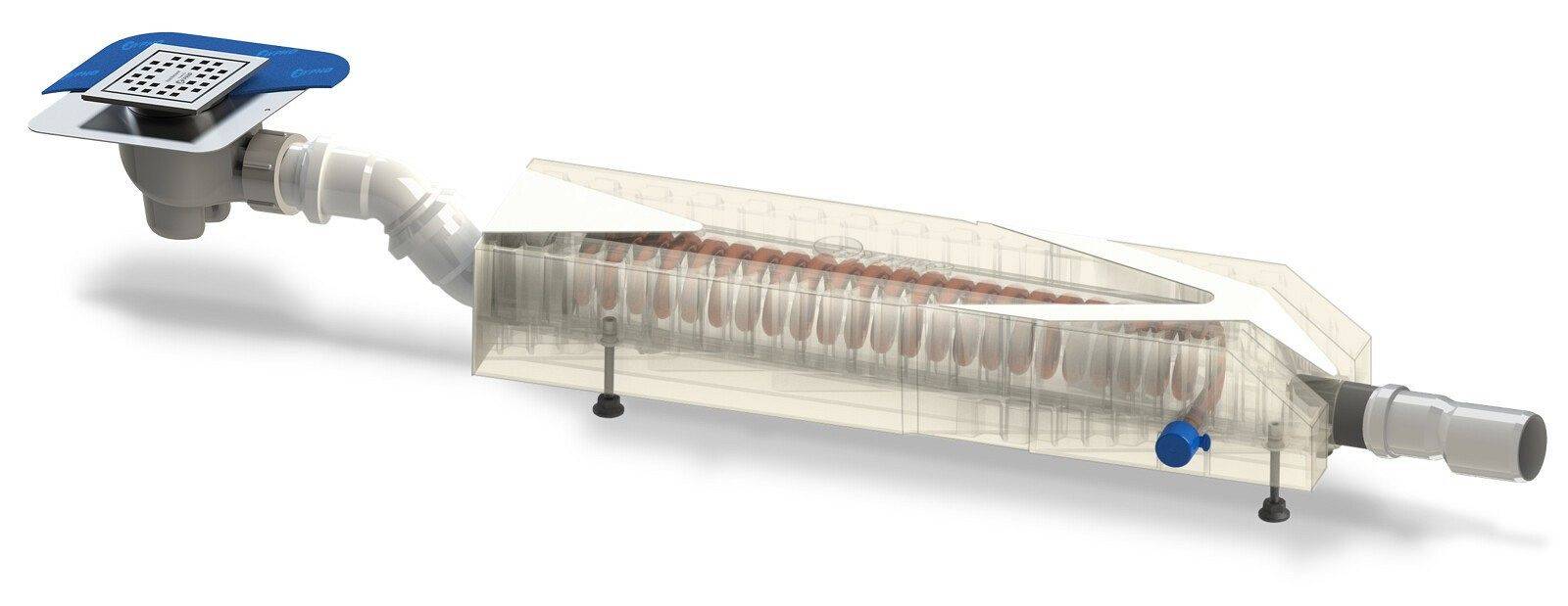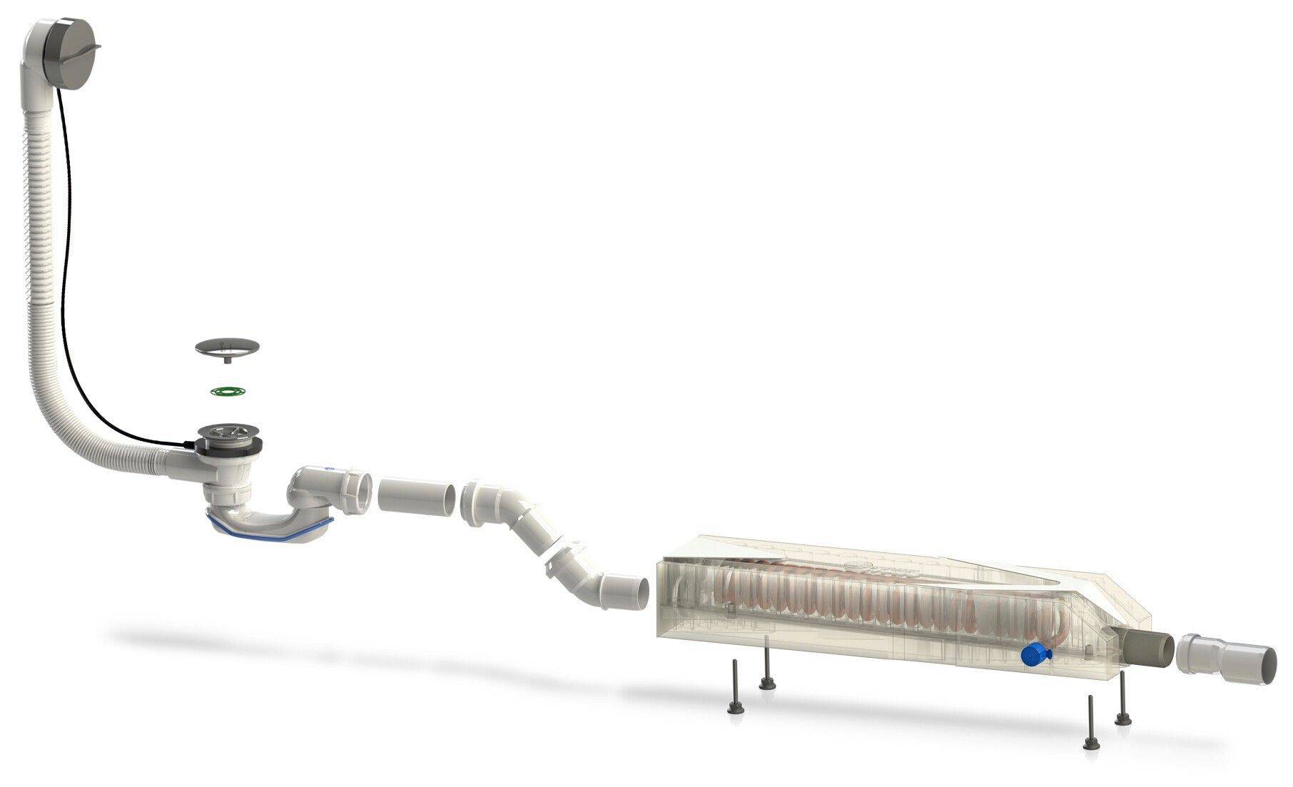 - Możliwość zamontowania nawet w odległości do pięciu metrów od odpływu.